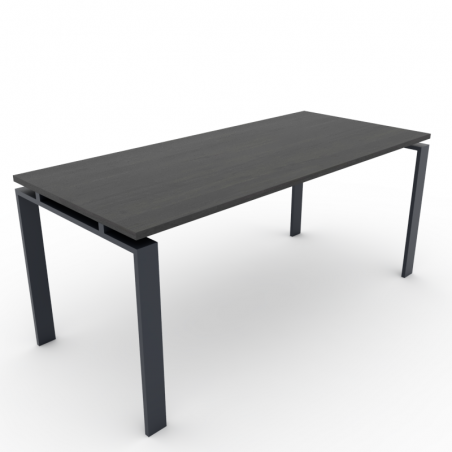 Mesa fabricada con tablero canteado, bilaminado de 25mm de espesor. Se caracteriza por su estructura metálica de marco abierto, con dos patas, efecto U invertida, y vigas rigidizantes bajo la tapa de mesa, pintado en epoxi con secado al horno. Opciones en el acabado: Medidas Disponibles: 140x60cm, 140x80cm, 160x80cm, 180x80cm y 200x80cm Estructura metálica: blanco, gris grafito, gris plata, efecto cromo o negro.