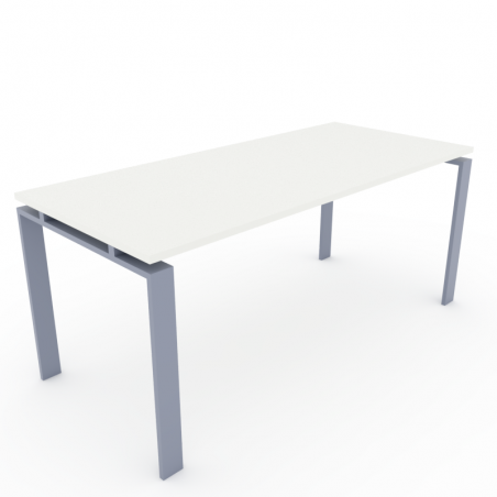 Mesa fabricada con tablero canteado, bilaminado de 25mm de espesor. Se caracteriza por su estructura metálica de marco abierto, con dos patas, efecto U invertida, y vigas rigidizantes bajo la tapa de mesa, pintado en epoxi con secado al horno. Opciones en el acabado: Medidas Disponibles: 140x60cm, 140x80cm, 160x80cm, 180x80cm y 200x80cm Estructura metálica: blanco, gris grafito, gris plata, efecto cromo o negro.